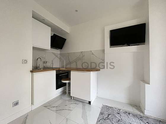 Este apartamento posee una cocinay todo el equipamiento indispensable para su vida diaria : placas eléctricas, refrigerador, horno, micro ondas, congelador, campana extractora, tostador, hervidor, cafetera, vajilla, taburete.