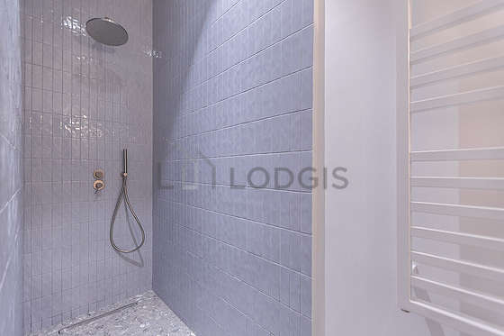 Este apartamento tiene una sala de baño. Este baño tiene todo lo necesario para su bienestar diario : ducha. El WC está separado de la sala del baño y ubicado en un espacio independiente.