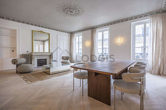 SalónEste apartamento está formado por un salón ventanas. Este salón está amueblado y equipado para que su estancia sea agradable : sofá, 2 sillones, mesa, mesita, 6 silla(s).