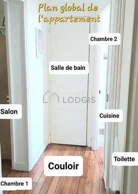 SalónEste apartamento está formado por un salón con parquet en el suelo y ventanas. Este salón tranquilo está amueblado y equipado para que su estancia sea agradable : televisor, sofá, mesita, armario empotrado, 1 silla(s).