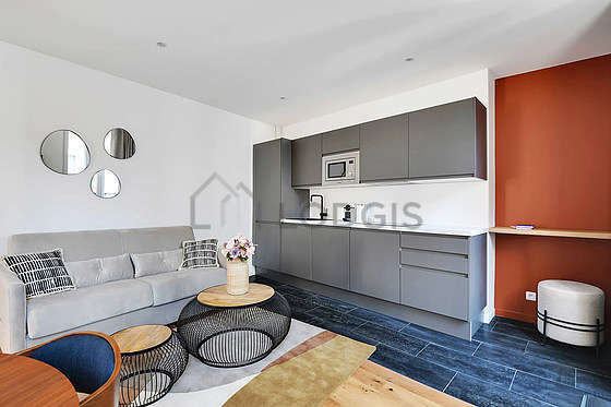 Este apartamento posee una cocinay todo el equipamiento necesario para su vida diaria : placas eléctricas, refrigerador, micro ondas, tostador, hervidor, cafetera.