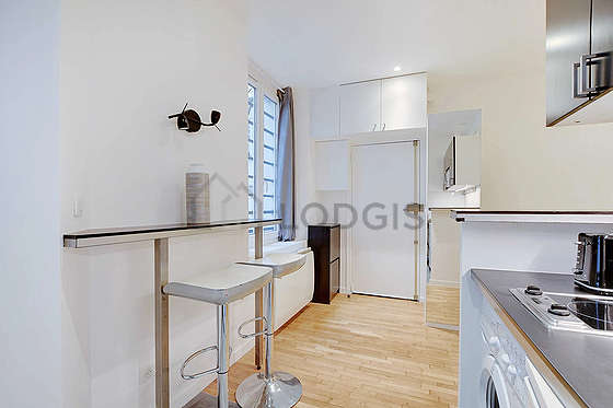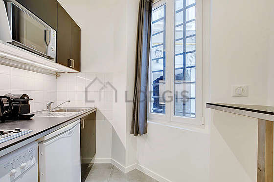 Este apartamento posee una cocinay todo el equipamiento necesario para su vida diaria : placas eléctricas, refrigerador, tostador, hervidor, cafetera.