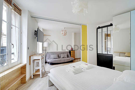 SalónEste apartamento está formado por un salón ventanas. Este salón está amueblado y equipado para que su estancia sea agradable : televisor1 sofá cama, 1 cama.