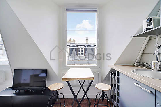Este apartamento posee una cocinay todo el equipamiento esencial para su vida diaria : placas eléctricas, refrigerador, congelador, horno, micro ondas, campana extractora, tostador, hervidor, cafetera, mesa, armario empotrado.