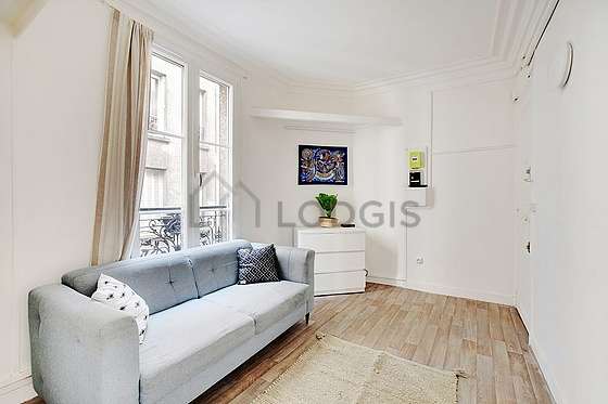 SalónEste apartamento está formado por un salón con parquet en el suelo. Este salón muy tanquilo está amueblado y equipado para que su estancia sea agradable : sábanas, edredones, sofá, mesa, armario, cómoda, 2 silla(s), mesita de noche, lamp, painting, carpet1 sofá cama.