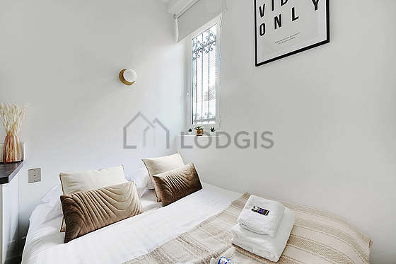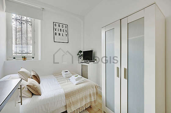 SalónEste apartamento está formado por un salón ventanas. Este salón está amueblado y equipado para que su estancia sea agradable : televisor, mesa, armario empotrado, 1 silla(s)1 cama.