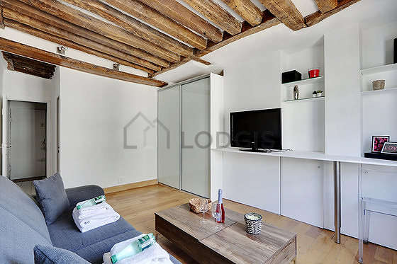 SalónEste apartamento está formado por un salón ventanas. Este salón está amueblado y equipado para que su estancia sea agradable : televisor, sábanas, edredones, mesita, armario empotrado1 sofá cama.