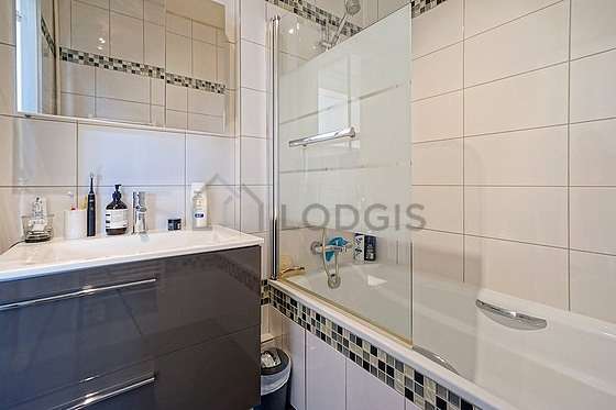 Este apartamento tiene una sala de baño. Este baño tiene todo lo necesario para su bienestar diario : bañera. El WC está separado de la sala del baño y ubicado en un espacio independiente.