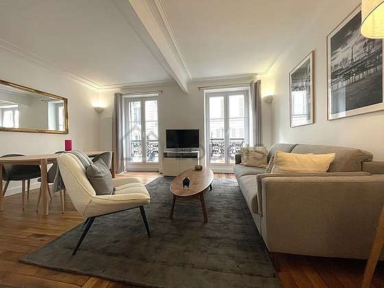 SalónEste apartamento está formado por un salón ventanas. Este salón está amueblado y equipado para que su estancia sea agradable : televisor, sábanas, edredones, sofá, 1 sillones, mesa, 4 silla(s)1 sofá cama.