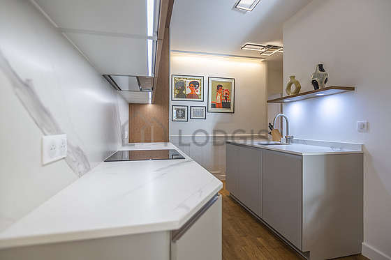 Este apartamento posee una cocinay todo el equipamiento indispensable para su vida diaria : placas eléctricas, refrigerador, horno, micro ondas, congelador, campana extractora, tostador, bin.