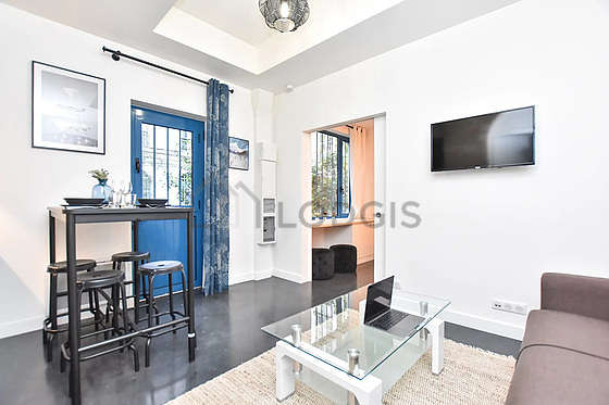 SalónEste apartamento está formado por un salón ventanas. Este salón muy tanquilo está amueblado y equipado para que su estancia sea agradable : televisor, sofá, mesa, mesita, 1 silla(s)1 sofá cama.
