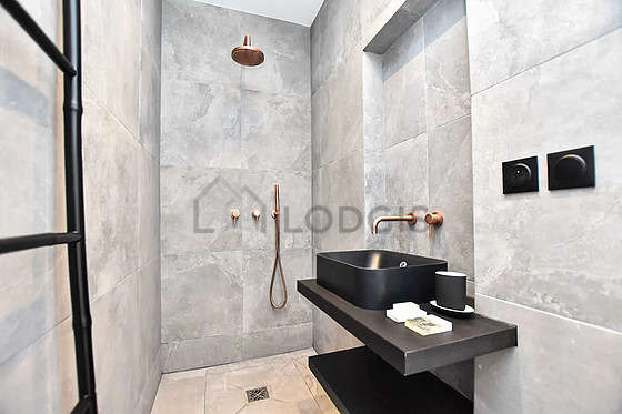 Este apartamento tiene una sala de baño. Este baño tiene todo lo necesario para su bienestar diario : ducha, sink. El WC está separado de la sala del baño y ubicado en un espacio independiente.