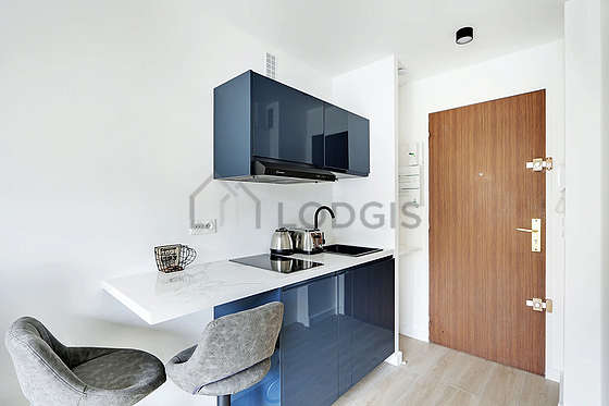 Este apartamento posee una cocinay todo el equipamiento esencial para su vida diaria : placas eléctricas, refrigerador, horno, tostador, hervidor, cafetera.