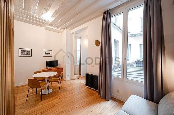 SalónEste apartamento está formado por un salón ventanas. Este salón está amueblado y equipado para que su estancia sea agradable : sofá, mesa1 sofá cama.