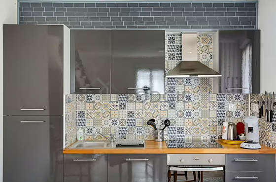 Posee una magnífica cocina con azulejo en el sueloy todo el equipamiento esencial para su vida diaria : refrigerador, congelador, horno, horno micro-ondas, hervidor, cafetera, mesa, vajilla.