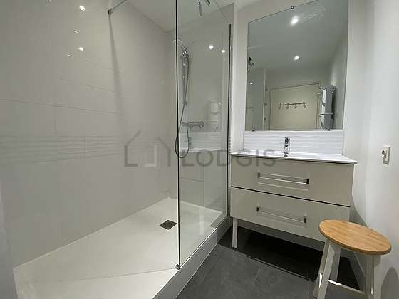 Este apartamento tiene una sala de baño. Este baño tiene todo lo necesario para su bienestar diario : sink. El WC está separado de la sala del baño y ubicado en un espacio independiente.