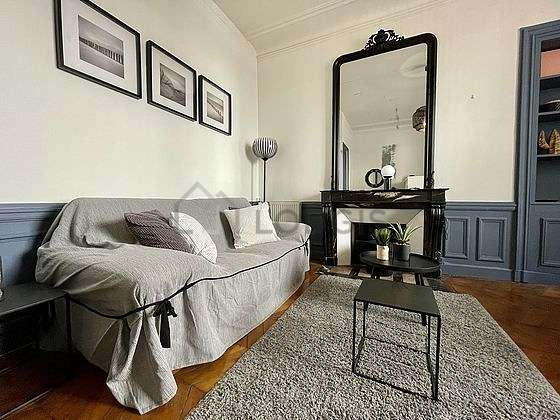 SalónEste apartamento está formado por un salón con parquet en el suelo y ventanas. Este salón muy tanquilo está amueblado y equipado para que su estancia sea agradable : sofá, mesa, mesita, 1 silla(s)1 cama.