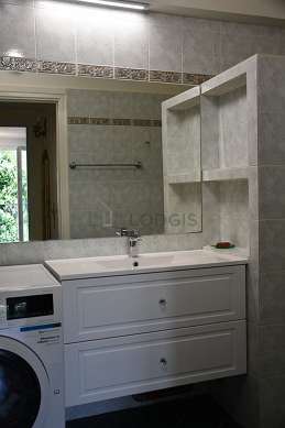 Este apartamento tiene una sala de baño. Este baño tiene todo lo necesario para su bienestar diario : armario, bañera, secador de pelo, sink, coat stand, bin, ventilator. El WC está separado de la sala del baño y ubicado en un espacio independiente.