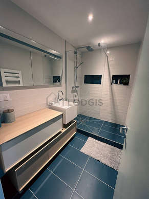 Este apartamento tiene una sala de baño. Este baño tiene todo lo necesario para su bienestar diario : ducha, sink. El WC está separado de la sala del baño y ubicado en un espacio independiente.