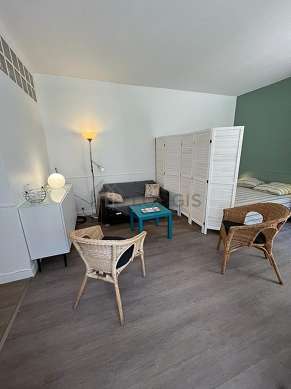 SalónEste apartamento está formado por un salón con azulejo en el suelo y ventanas. Este salón está amueblado y equipado para que su estancia sea agradable : televisor, sofá, 2 sillones, mesita, mesa de estudio, estantería, armario, 1 silla(s), floor lamp, tv stand, painting1 sofá cama.