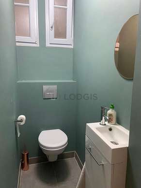 Este apartamento tiene una sala de baño. Este baño tiene todo lo necesario para su bienestar diario : toallas, armario empotrado, ducha, secador de pelo, airer, sink, mirror, towel rack, bin, radiador seca-toallas. El WC está separado de la sala del baño y ubicado en un espacio independiente.