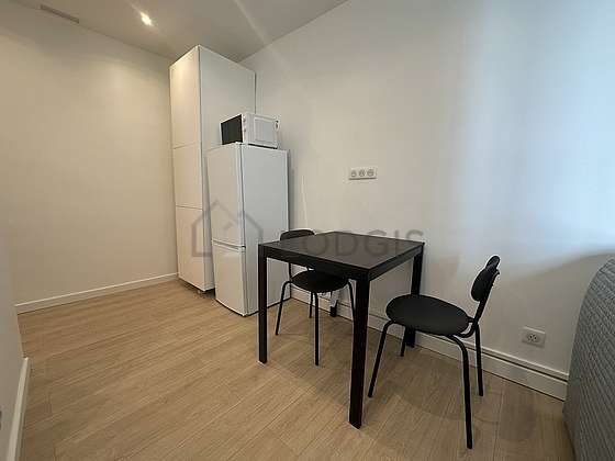 SalónEste apartamento está formado por un salón con parquet en el suelo y ventanas doble acristalamiento y una vista a al patio. Este salón está amueblado y equipado para que su estancia sea agradable : televisor, mesa, mesita, armario empotrado, 4 silla(s)1 sofá cama.