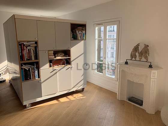 SalónEste apartamento está formado por un salón ventanas y una vista a la calle. Este salón tranquilo está amueblado y equipado para que su estancia sea agradable : sofá, mesa, biblioteca, chimenea, 1 silla(s)1 cama infantil.