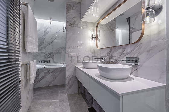 Este apartamento tiene una sala de baño. Este baño tiene todo lo necesario para su bienestar diario : bañera, ducha. El WC está integrado en la sala del baño.