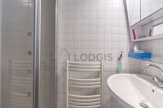 Este dúplex tiene una sala de baño magnífica y muy clara. Este baño tiene todo lo necesario para su bienestar diario : ducha, sink, radiador seca-toallas. El WC está separado de la sala del baño y ubicado en un espacio independiente.
