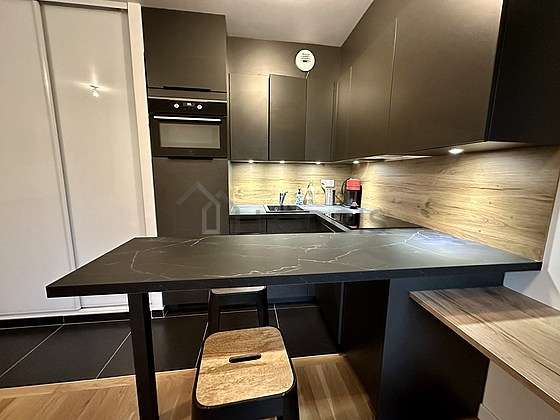 Este apartamento posee una cocinay todo el equipamiento indispensable para su vida diaria : placas eléctricas, refrigerador, horno, campana extractora, tostador, hervidor, cafetera, vajilla, 1 silla(s), bar.