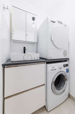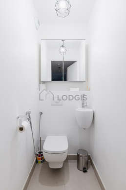 Este apartamento tiene una sala de baño. Este baño tiene todo lo necesario para su bienestar diario : armario empotrado, ducha, sink, radiador seca-toallas. El WC está separado de la sala del baño y ubicado en un espacio independiente.