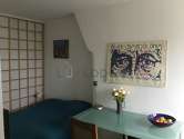 Este apartamento posee una cocinay todo el equipamiento esencial para su vida diaria : placas eléctricas, refrigerador, congelador, horno, micro ondas, tostador, hervidor, cafetera, armario empotrado, vajilla.