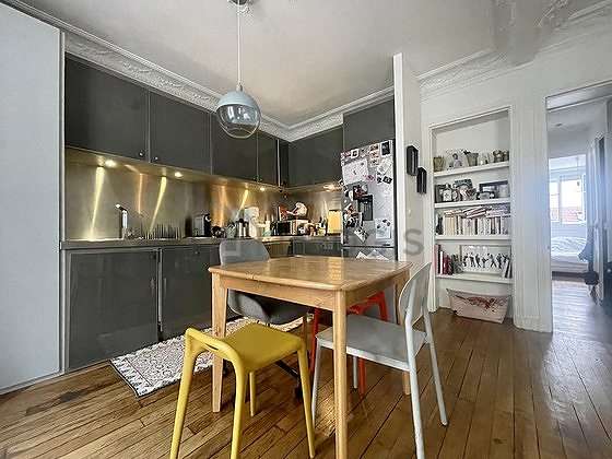 Este apartamento posee una cocinay todo el equipamiento esencial para su vida diaria : placas eléctricas, refrigerador, congelador, horno, micro ondas, campana extractora, cafetera, armario empotrado, vajilla.