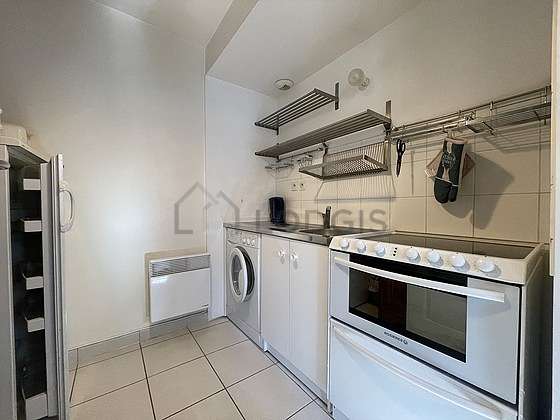Este apartamento posee una cocinay todo el equipamiento necesario para su vida diaria : placas eléctricas, refrigerador, congelador, horno, micro ondas, hervidor, cafetera, vajilla.
