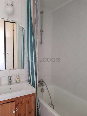 Este apartamento tiene una sala de baño. Este baño tiene todo lo necesario para su bienestar diario : estantería, bañera, sink. El WC está separado de la sala del baño y ubicado en un espacio independiente.