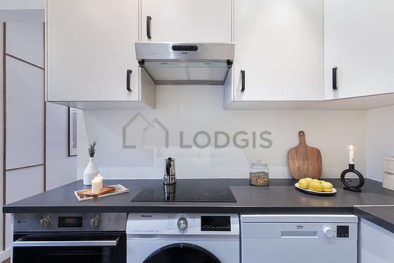 Este apartamento posee una cocinay todo el equipamiento necesario para su vida diaria : placas eléctricas, refrigerador, horno, micro ondas, tostador, vajilla.