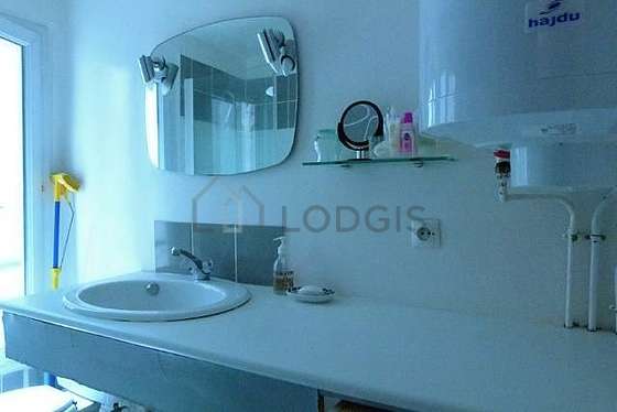 Este apartamento tiene una sala de baño. Este baño tiene todo lo necesario para su bienestar diario : sink. El WC está separado de la sala del baño y ubicado en un espacio independiente.