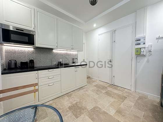 Con el fin de compartir vuestras comidas en un ambiente distendido durante su estancia parisina, este apartamento posee un agradable comedor gracias a mesa, armario empotrado, 1 silla(s).