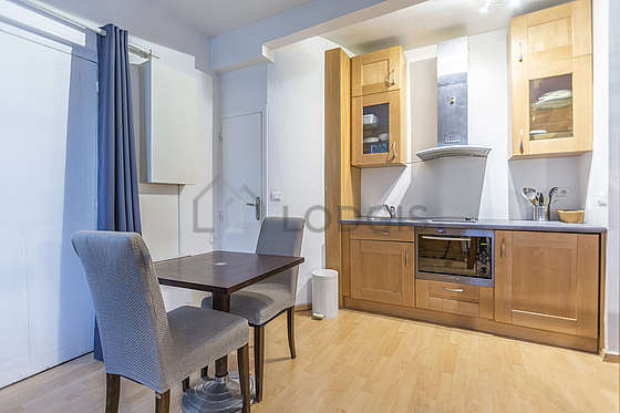 Este apartamento posee una magnífica cocina con parquet en el sueloy todo el equipamiento indispensable para su vida diaria : placas eléctricas, refrigerador, horno micro-ondas, campana extractora, tostador, hervidor, cafetera, mesa, armario empotrado, 1 silla(s).