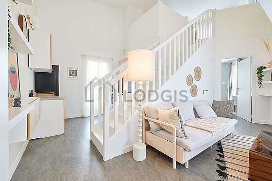 SalónEste apartamento está formado por un salón ventanas doble acristalamiento. Este salón está amueblado y equipado para que su estancia sea agradable : televisor, sofá, 1 sillones, mesa, mesita, mesa de estudio, estantería.
