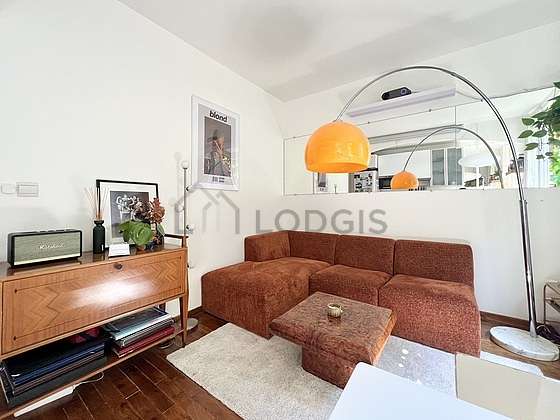 SalónEste apartamento está formado por un salón ventanas doble acristalamiento. Este salón está amueblado y equipado para que su estancia sea agradable : sofá, mesita, aparador, bin.