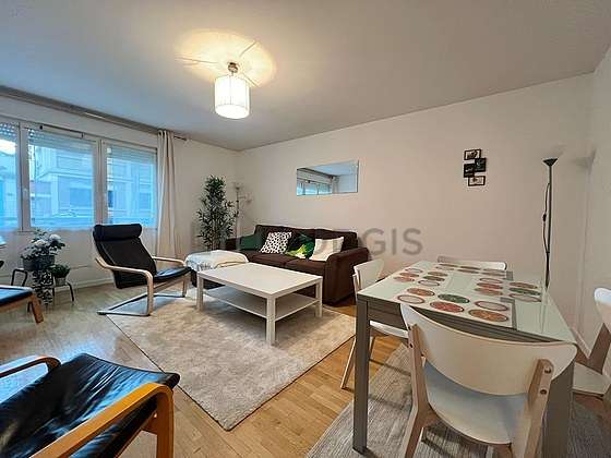 Este apartamento está formado por un salón con parquet en el suelo y ventanas. Este salón tranquilo está amueblado y equipado para que su estancia sea agradable : televisor, sofá, 2 sillones, mesa, mesita, cómoda, 1 silla(s)1 sofá cama.