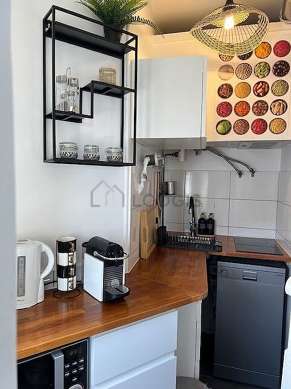 Este apartamento posee una cocinay todo el equipamiento indispensable para su vida diaria : placas eléctricas, refrigerador, horno micro-ondas, campana extractora, hervidor, cafetera, armario empotrado, vajilla.