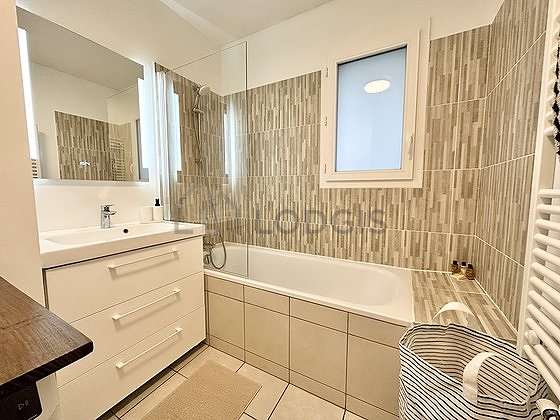 Este apartamento tiene una sala de baño agradable y clara. Este baño tiene todo lo necesario para su bienestar diario : armario empotrado, bañera, sink. El WC está separado de la sala del baño y ubicado en un espacio independiente.