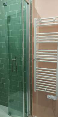 Este apartamento tiene una sala de baño magnífica y muy clara. Este baño tiene todo lo necesario para su bienestar diario : plancha, ducha, sink, radiador seca-toallas. El WC está separado de la sala del baño y ubicado en un espacio independiente.