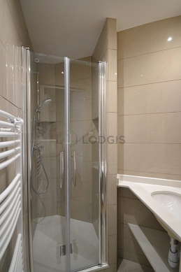 Este apartamento tiene una sala de baño magnífica y muy clara. Este baño tiene todo lo necesario para su bienestar diario : ducha, sink, radiador seca-toallas. El WC está separado de la sala del baño y ubicado en un espacio independiente.