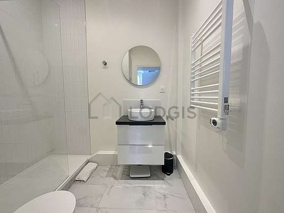 Este apartamento tiene una sala de baño. Este baño tiene todo lo necesario para su bienestar diario : ducha, sink, radiador seca-toallas. El WC está integrado en la sala del baño.