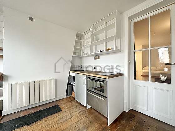 Este apartamento posee una cocina contiguo al salóny todo el equipamiento indispensable para su vida diaria : placas eléctricas, refrigerador, congelador, horno, micro ondas, vajilla.