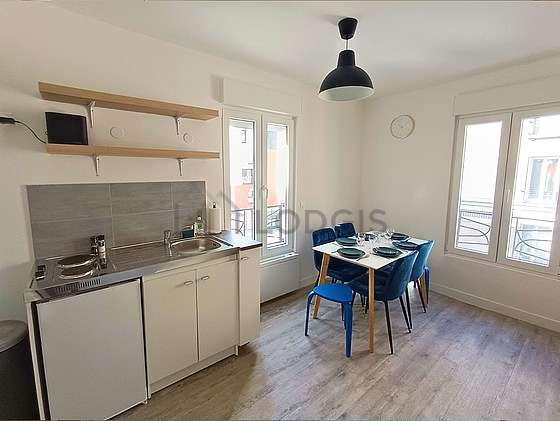 Este tríplex posee una magnífica cocina con parquet en el sueloy todo el equipamiento indispensable para su vida diaria : placas eléctricas, refrigerador, congelador, horno, micro ondas, campana extractora, tostador, hervidor, cafetera, mesa, armario empotrado, vajilla, 1 silla(s).
