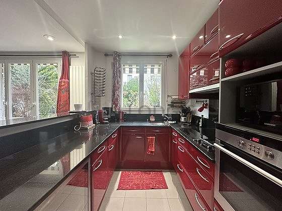 Este apartamento posee una bonito cocina con azulejo en el sueloy todo el equipamiento indispensable para su vida diaria : placas eléctricas, refrigerador, congelador, horno, micro ondas, campana extractora, tostador, hervidor, cafetera, vajilla.